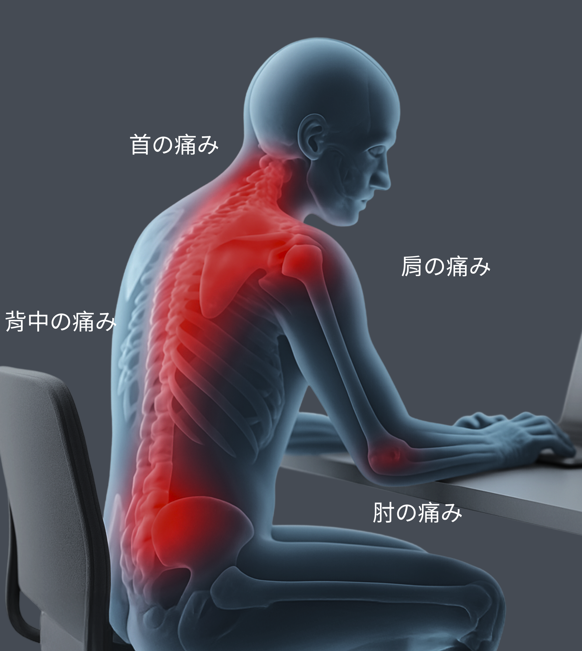 その結果、背骨のラインが崩れ、一部に負担がかかりやすくなることが確認されています。
