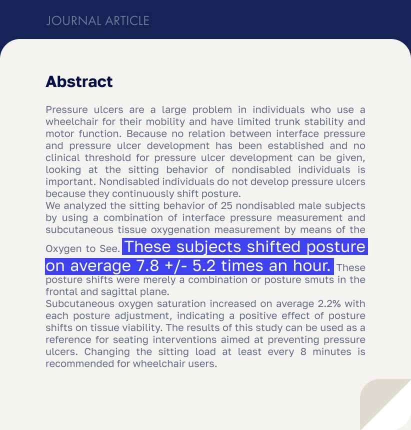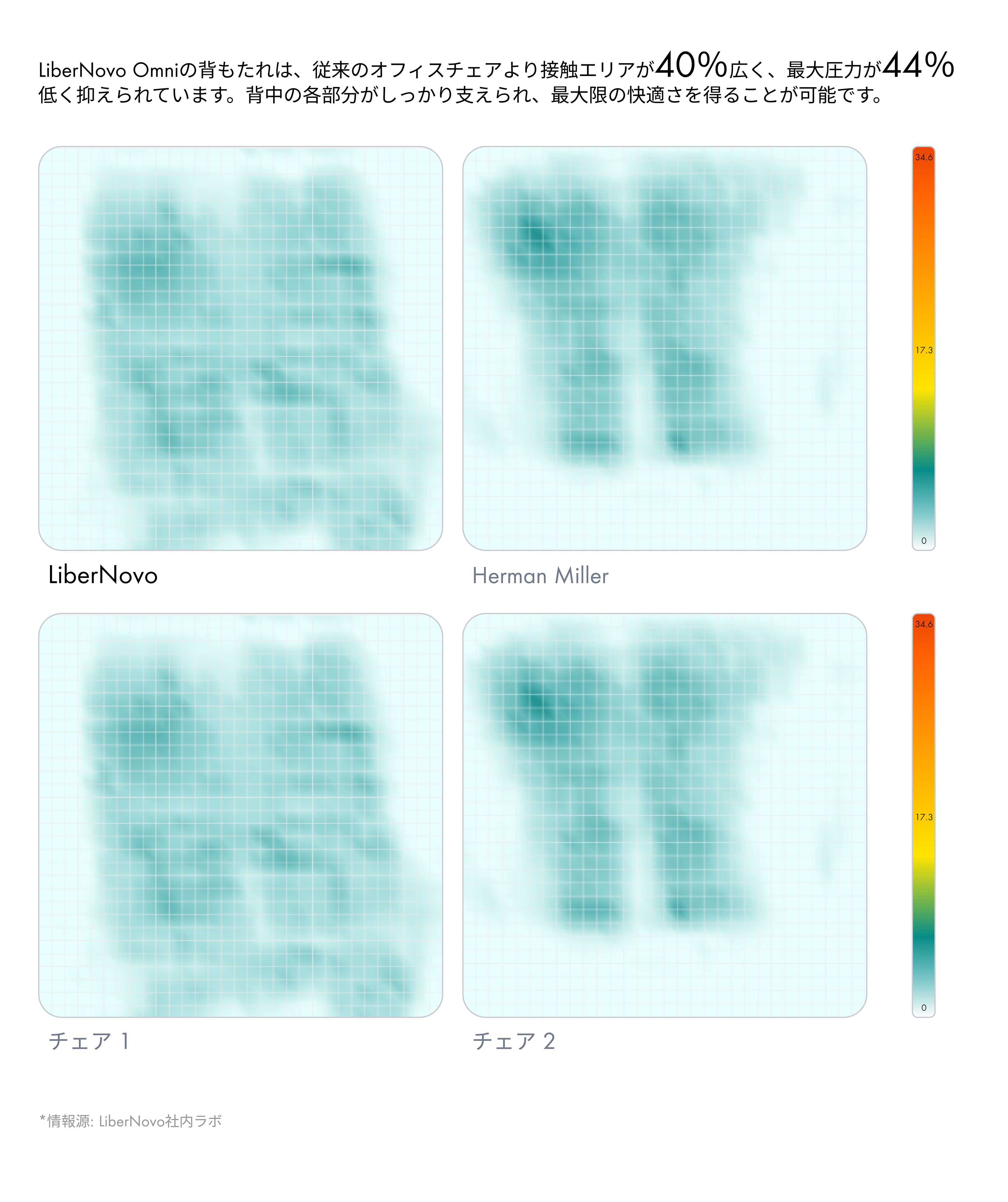 *情報元: J Reenalda, P Van Geffen, M Nederhand, M Jannink, M Ijzerman, H Rietman. Journal article: Analysis of healthy sitting behavior: Interface pressure distribution and subcutaneous tissue oxygenation