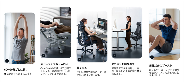 Omniのダイナミック・エルゴノミック設計が、健康的な座り方をサポート。