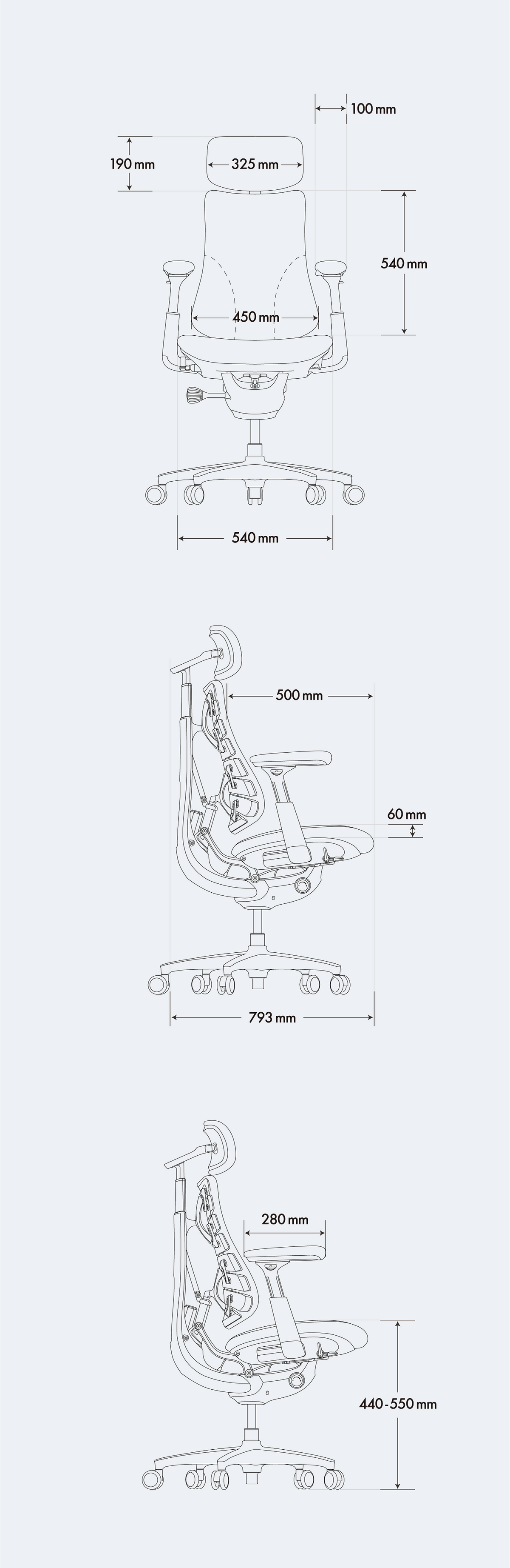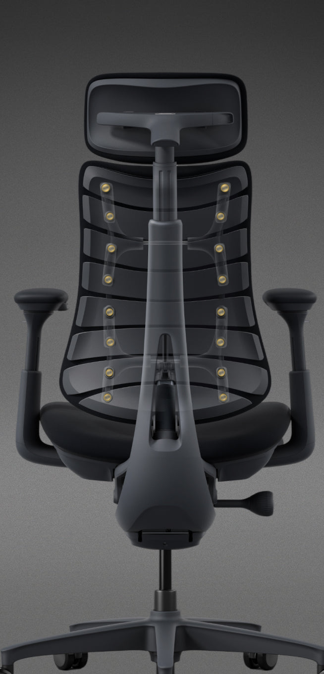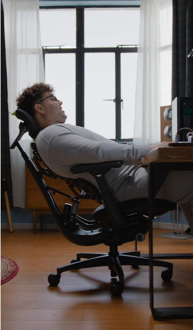 通気性に優れたネックレスト、調整可能な背もたれ、前後で硬さを変えた座面。Omniは、あらゆる姿勢に心地よさとサポートを届けます。