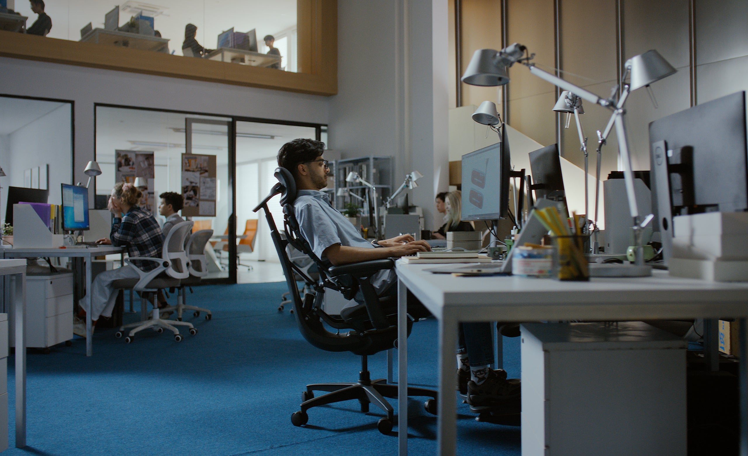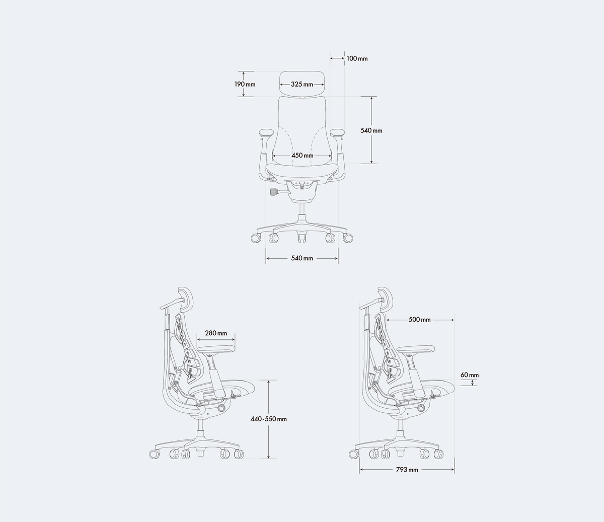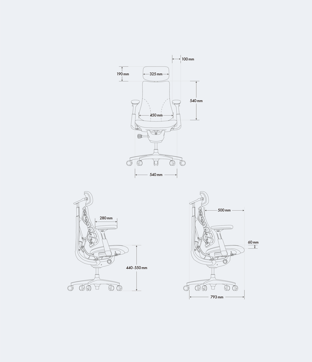 通気性に優れたネックレスト、調整可能な背もたれ、前後で硬さを変えた座面。Omniは、あらゆる姿勢に心地よさとサポートを届けます。