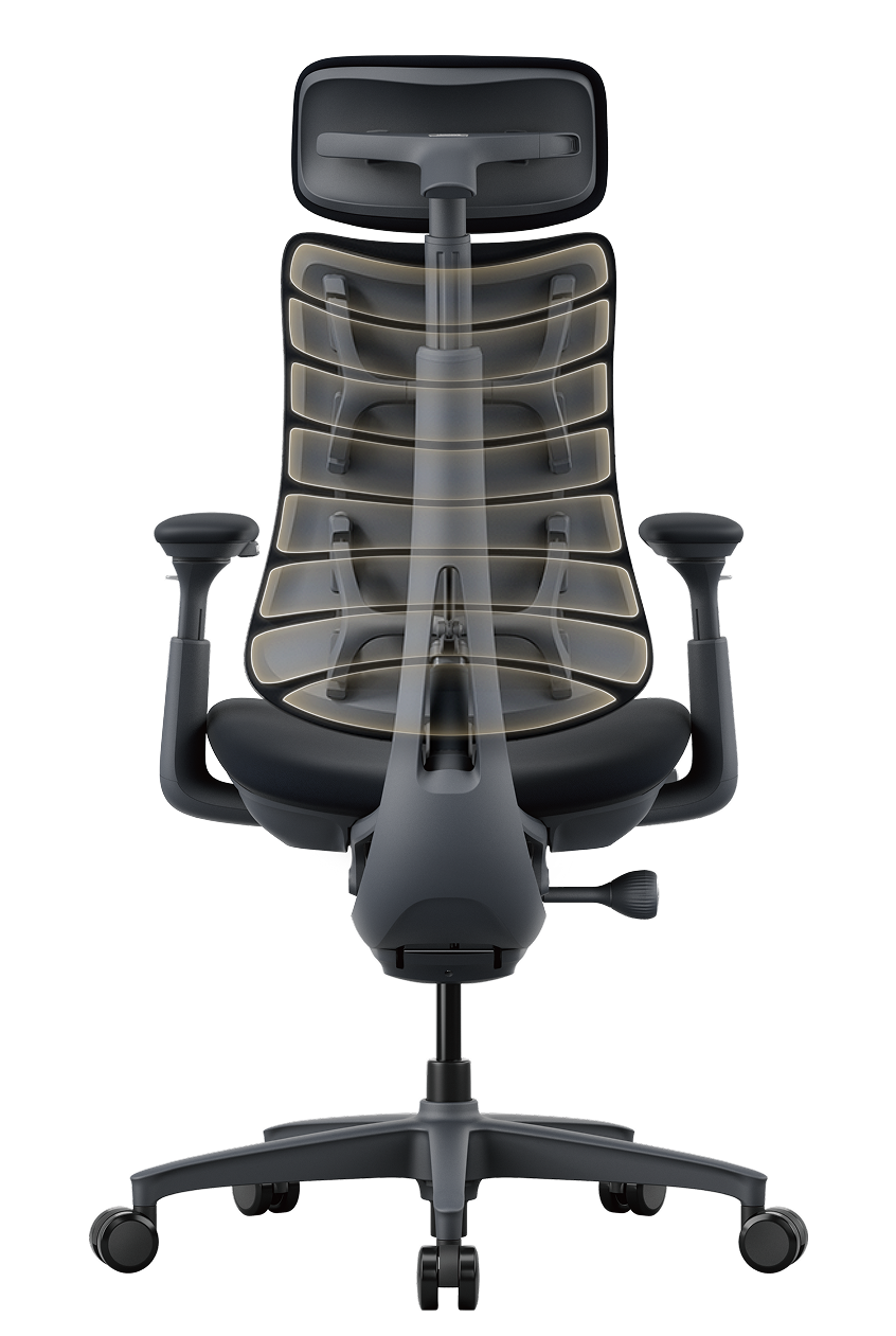 フレックスフィットバックレスト。背骨のラインに沿うように精密に設計。パーソナライズされた快適さを実現します。