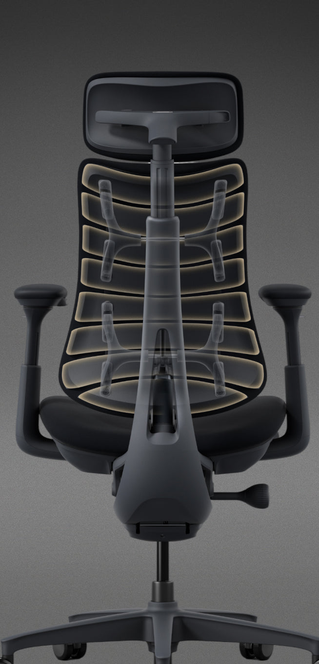 人の動きに寄り添うフレックスフィットバックレストが、背骨のカーブに合わせて、なめらかに動きます。