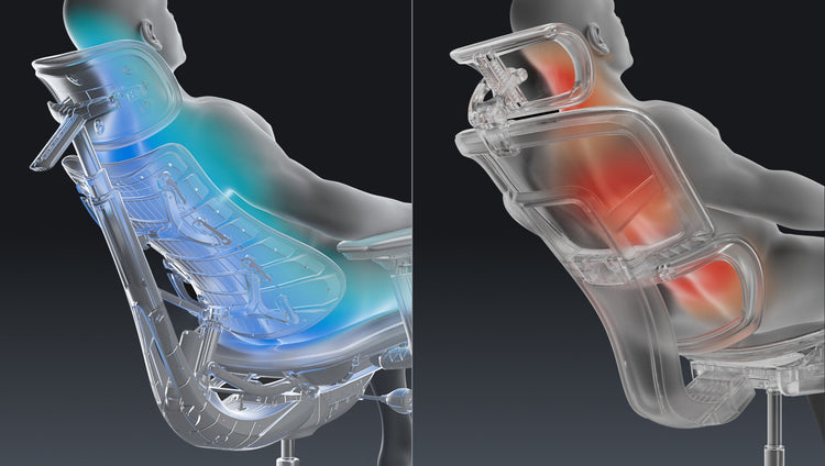 ErgoPulseモーターシステムが背もたれを動かし、最大136kgまで支えるS字カーブを形成。動きに合わせて背骨を正しい位置にキープ。