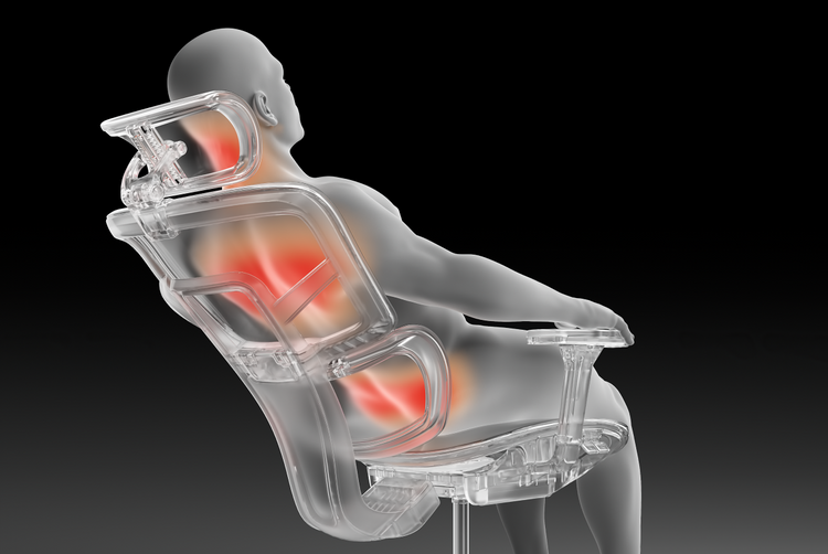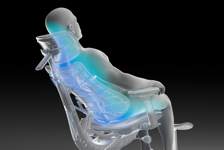 姿勢を変えたり、背伸びをしたり、最大160°までリクライニングしたりと、どんな動きにもモーター駆動のランバーサポートが素早く追従し、常に身体を支えやすい状態へと導く設計です。