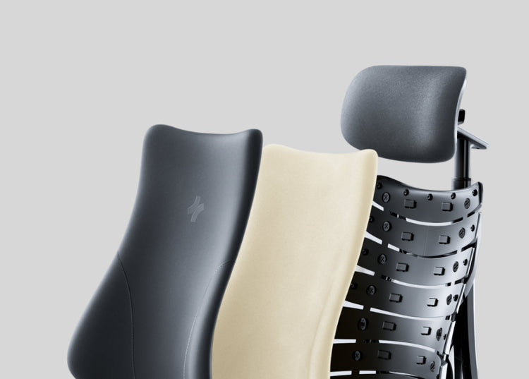 LiberNovo Omniは人の動きに追従するフレックスフィットバックレストと3層構造(肌に優しい伸縮層、圧力を分散するスポンジ層、航空宇宙グレードのフレキシブルパネル8枚)の背もたれで、柔らかく深く座り姿勢をサポートします。これはHerman Miller Embodyのピクセル構造に似ていますが、動いてもフィットする点が特徴です。また、吸湿性スポンジを採用したヘッドレストは通気性が高く快適で、Aeronの固定式ヘッドレストより優れています。さらに、ユーザーからはOmniの座面はAeronより厚く、柔らかめの座り心地を好む人に理想的だという声をいただいています。
