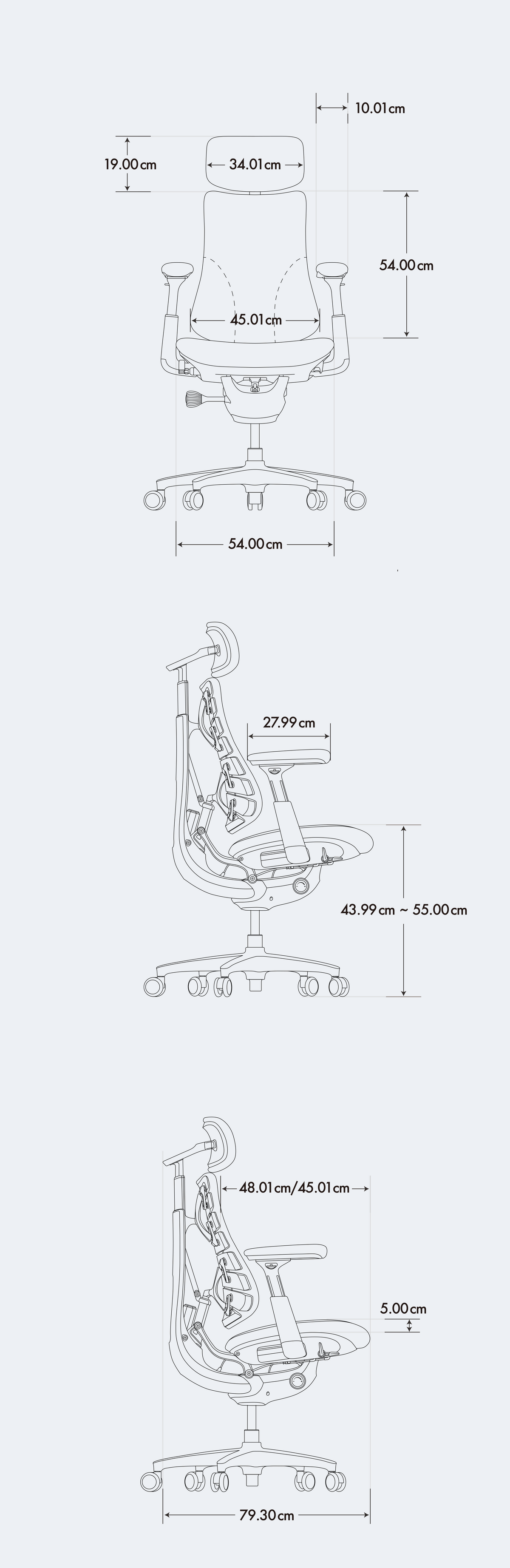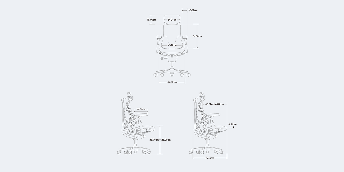 - 細かな調整で視線を快適にキープ:ヘッドレストとバックレストが別々に傾くことで視線の高さを保ちます。アームレストは最大100mmスライドし、自然な姿勢をサポート。