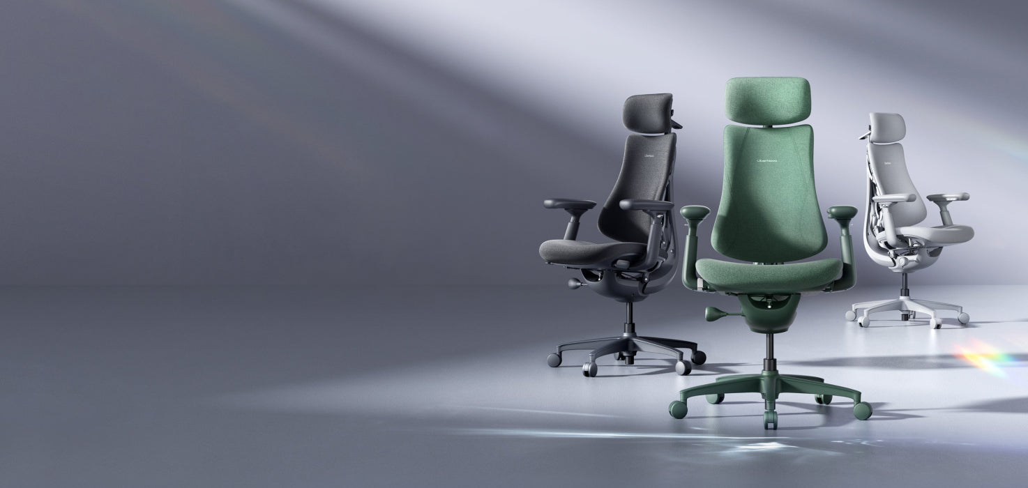 LiberNovo Omni(リベルノヴォ オムニ)は人の動きに追従するフレックスフィットバックレストと3層構造(肌に優しい伸縮層、圧力を分散するスポンジ層、航空宇宙グレードのフレキシブルパネル8枚)の背もたれで、柔らかく深く座り姿勢をサポートします。これはHerman Miller Embodyのピクセル構造に似ていますが、動いてもフィットする点が特徴です。また、吸湿性スポンジを採用したヘッドレストは通気性が高く快適で、Aeronの固定式ヘッドレストより優れています。さらに、ユーザーからはOmniの座面はAeronより厚く、柔らかめの座り心地を好む人に理想的だという声をいただいています。