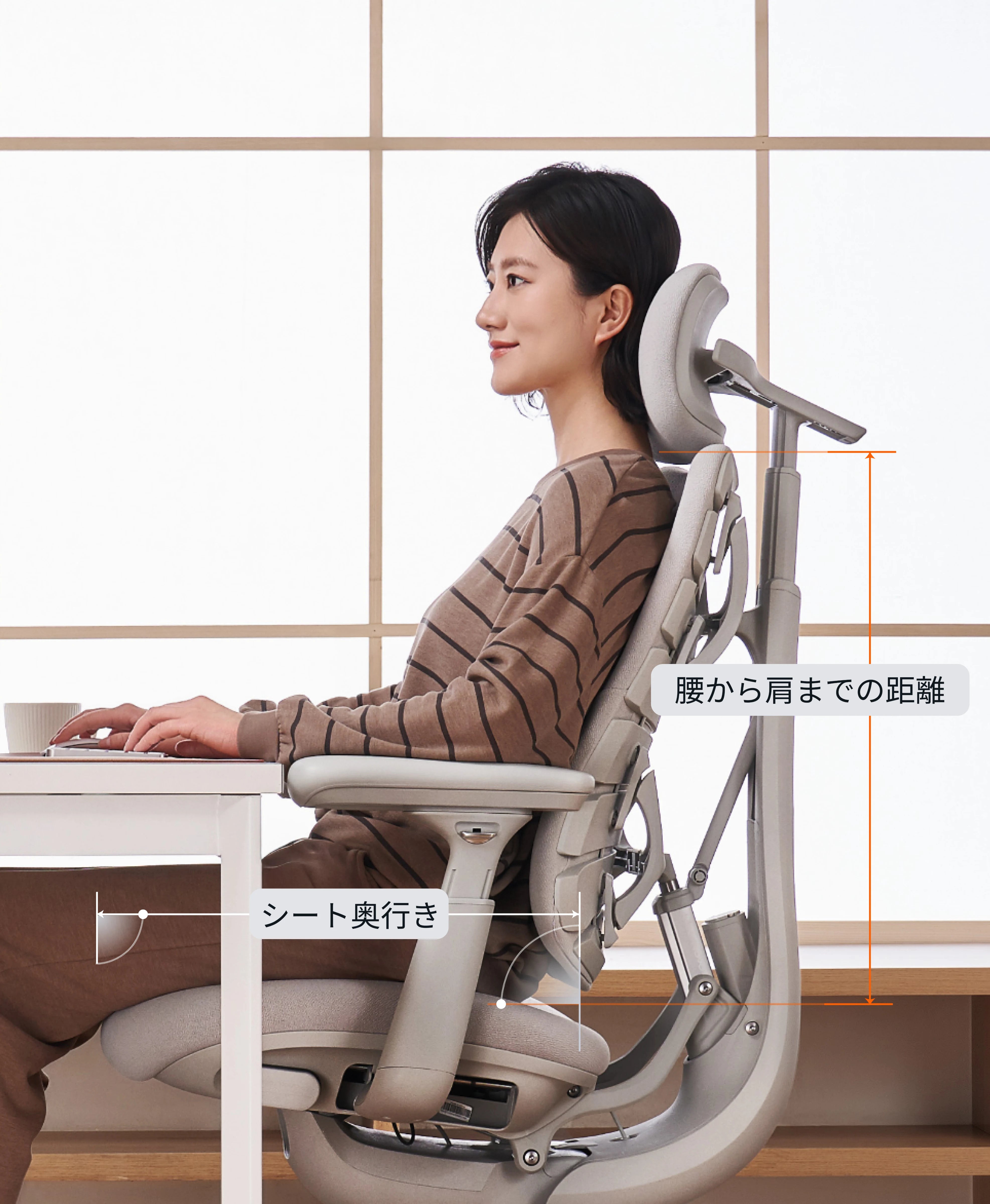 - 細かな調整で視線を快適にキープ: ヘッドレストとバックレストが別々に傾くことで視線の高さを保ちます。アームレストは最大100mmスライドし、自然な姿勢をサポート。
